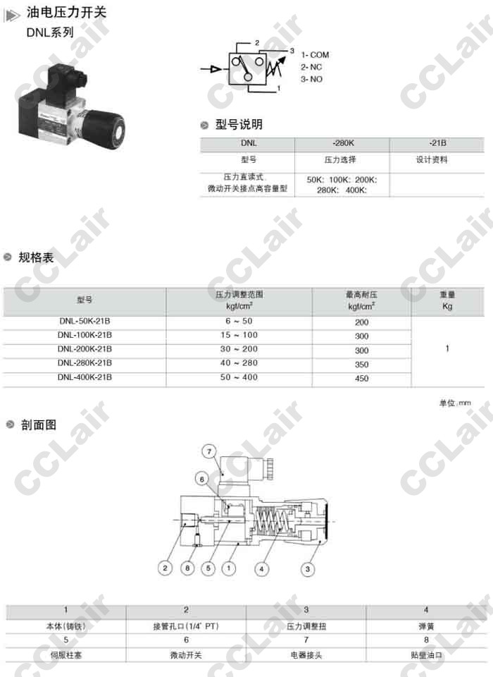 DNL-50K-21B,DNL-100K-21B,DNL-200K-21B,DNL-280K-21B,DNL-400K-21B,油電壓力開(kāi)關(guān),無(wú)錫昌林