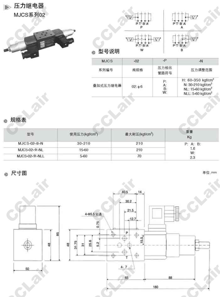 MJCS-02-P-H,MJCS-02-A-H,MJCS-02-B-H,MJCS-02-W-H,MJCS-02-P-N,MJCS-02-W-NL,MJCS-02-P-NLL,壓力繼電器