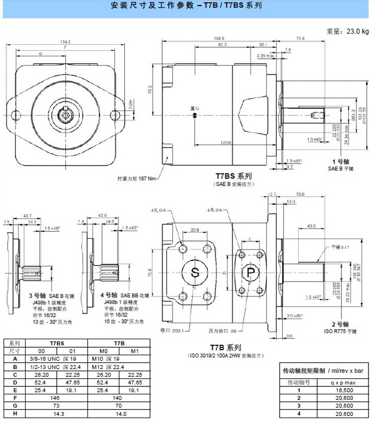 | T7 B系列一100 A2 HW ISO 3019-2 2螺栓安裝法蘭 | 泵芯規(guī)格 | 傳動(dòng)軸代號(hào) |