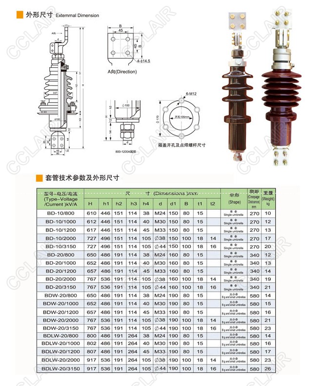 BD-10/800,BD-10/1000,BD-10/1200,BD-10/2000,BD-10/3150,BD(W)-20/,變壓器套管