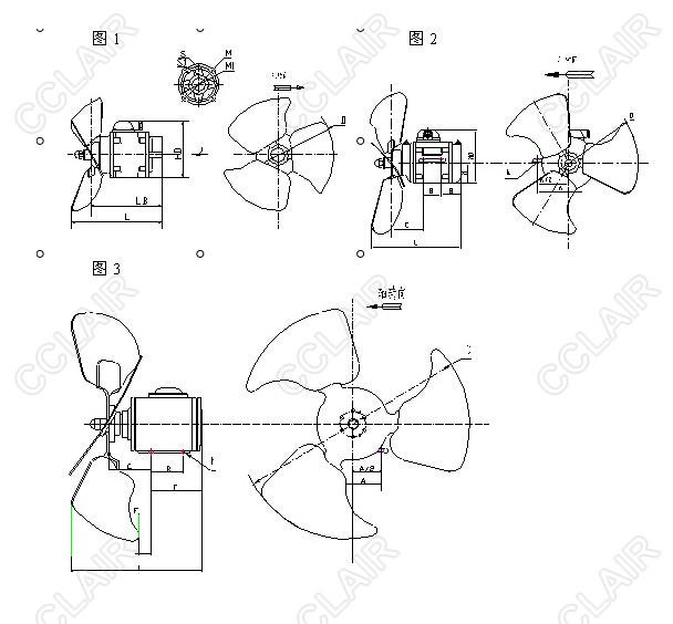 前吹(空氣由電動(dòng)機(jī)流向葉輪) |
