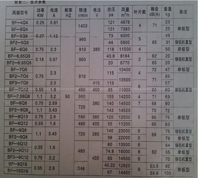 5.3.3停機(jī)時(shí)間較長(zhǎng),需要重新投入運(yùn)行時(shí),應(yīng)確保氣流通道和風(fēng)筒內(nèi)無(wú)異物,然后撥動(dòng)葉輪進(jìn)行檢查,待供電線路等一切正常后即可投入運(yùn)行。