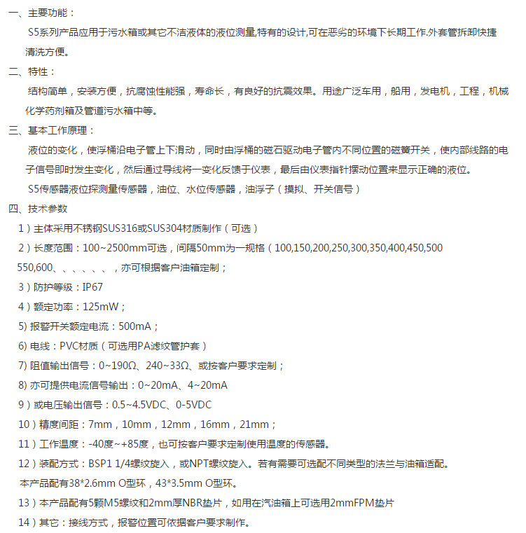 XFL-S5-280MM,XFL-S5-100MM,XFL-S5-150MM,XFL-S5-200MM,XFL-S5-250MM,醇基燃料液位傳感