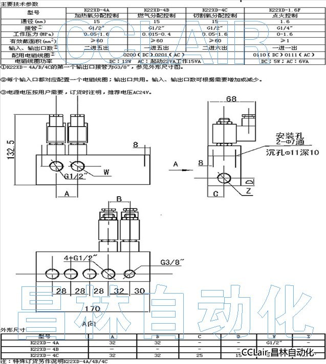 詳細信息 K22XD-4A,K22XD-4B,K22XD-4C,K22XD-1.6F,中央集成控制電磁閥