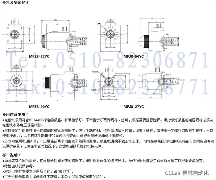 MFZ8-37YC,MFZ8-90YC,MFZ12-37YC,MFZ12-90YC,交流濕式閥用電磁鐵