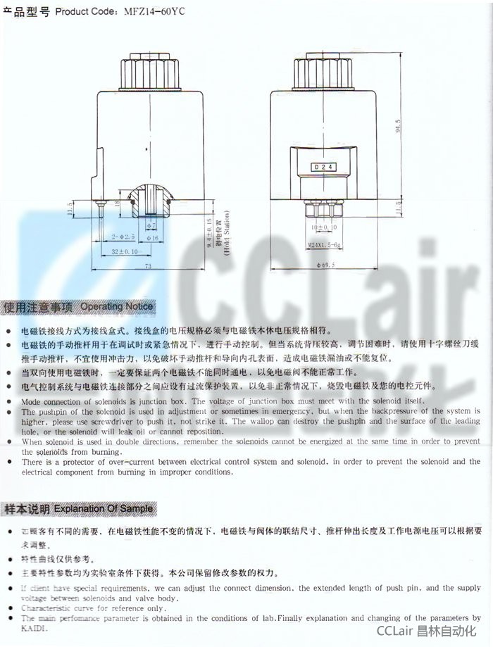 MFZ14-20YC,MFZ14-60YC,直流(接線盒式)濕式閥用電磁鐵