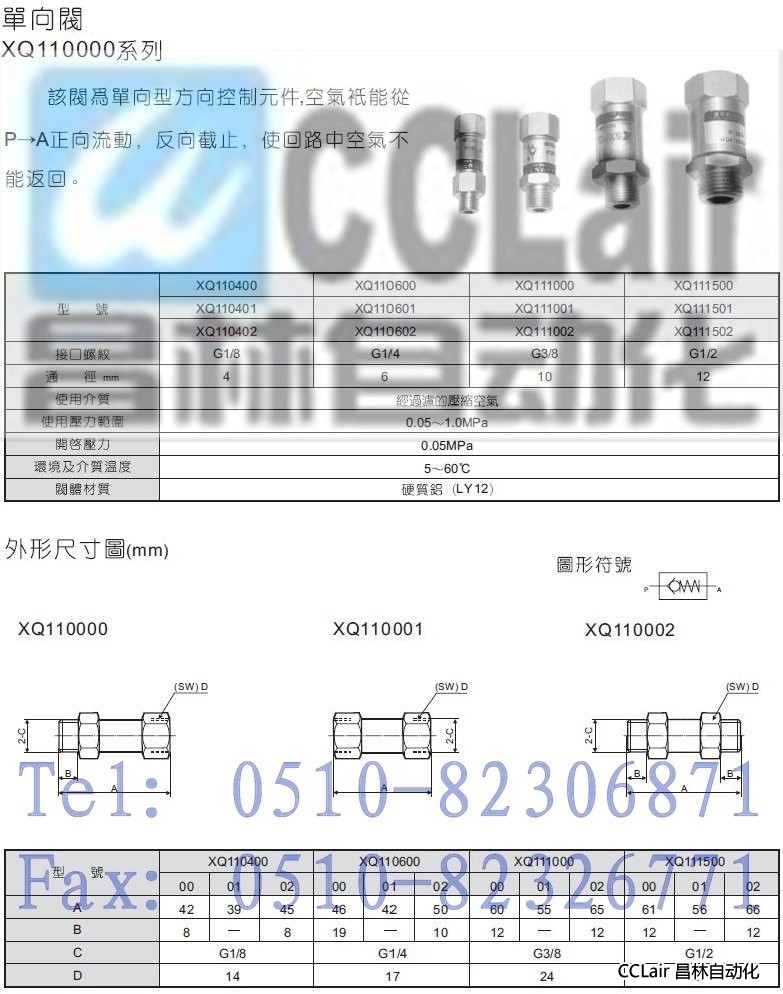 XQ111001,XQ111501,XQ110402,XQ110602,XQ111002,XQ111502,單向閥