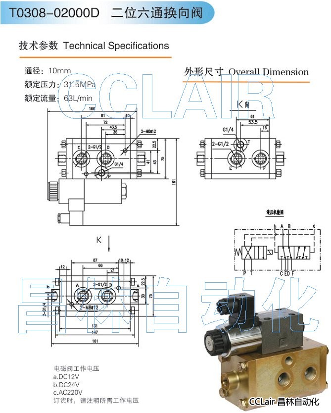T0308-02000D,二位六通換向閥