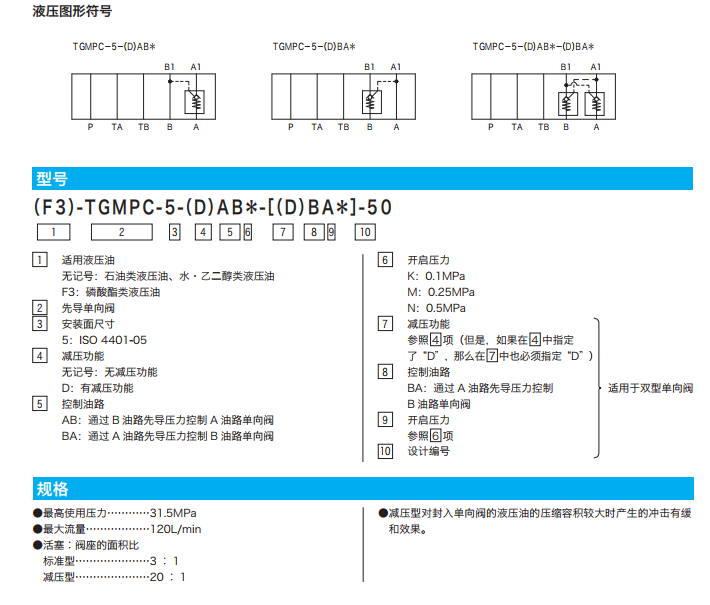 TGMPC-5-ABK-50,TGMPC-5-ABM-50,TGMPC-5-ABN-50,TGMPC-5-BAK-50,TGMPC-5疊加型先導(dǎo)單向閥