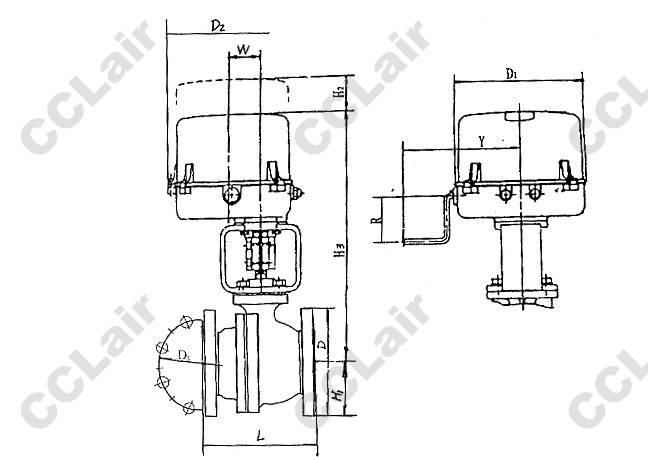 PN64電動(dòng)O型切斷球閥外形尺寸 mm
