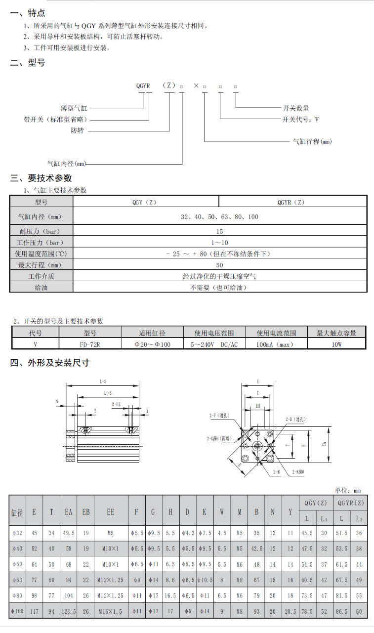 QGY(Z)帶導(dǎo)桿防轉(zhuǎn)薄型氣缸