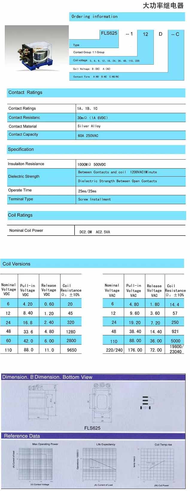 FLS625,大功率繼電器 |