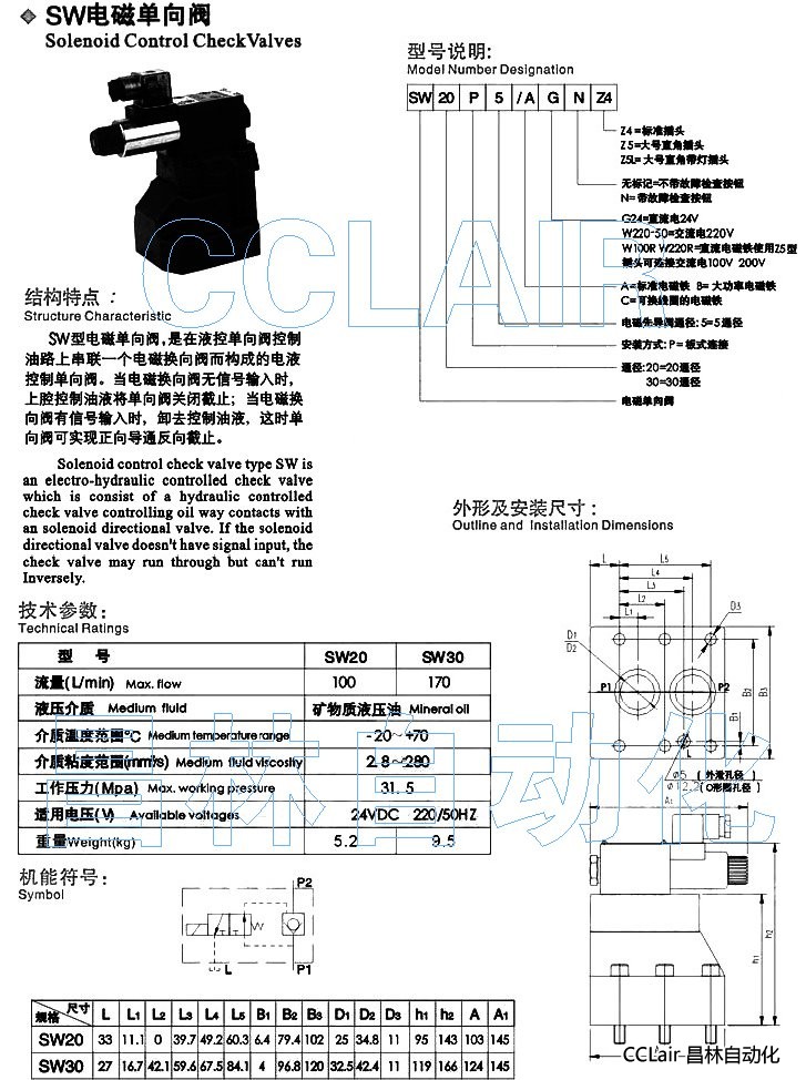 SW30P5/AW100RNZ5L,SW30P5/AW100RZ4,SW30P5/AW100RZ5,電磁單向閥