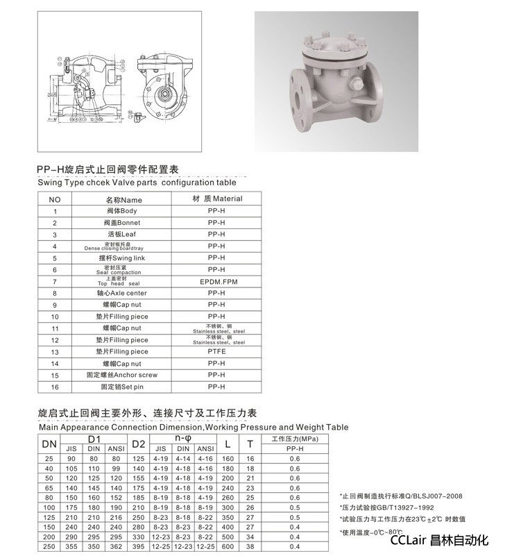 (2)使用溫度廣:PPH的使用溫度為-20℃~+90℃;