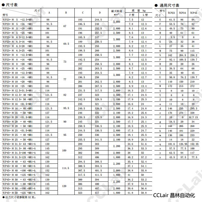 無(wú)錫昌林TCP44-L31.5-50-MR1,TCP44-L40-40-MR1,