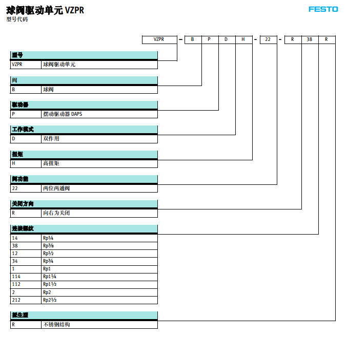 VZPR-BPDH-22-R14R,VZPR-BPDH-22-R38R,VZPR-BPDH-22-R12R,festo球閥驅動單元