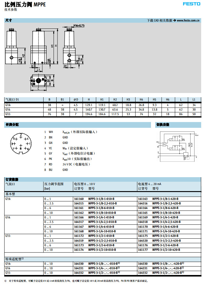 MPPE-3-1/8-1-010-B,MPPE-3-1/4-1-010-B,MPPE-3-1/2-1-010-B,festo比例壓力閥 |