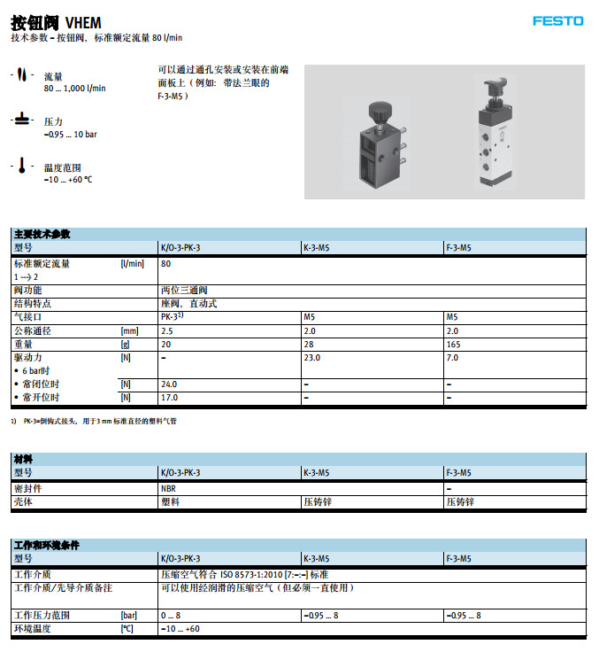 K/O-3-PK-3,K-3-M5,F-3-M5,festo按鈕閥