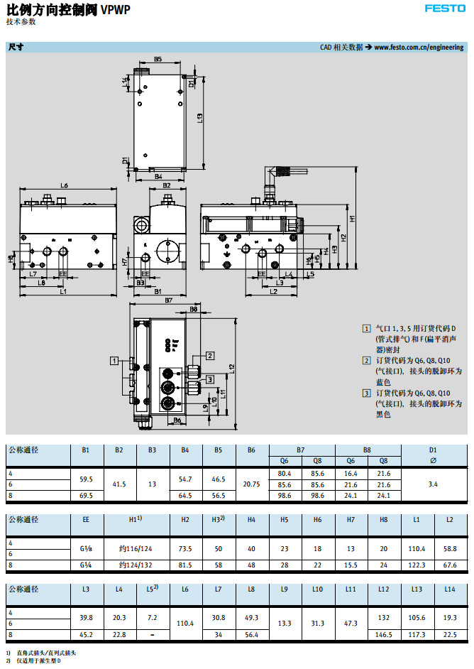 VPWP-4-L-5-Q6,VPWP-6-L-5-Q8,VPWP-8-L-5-Q10,festo比例方向控制閥