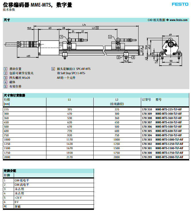 MME-MTS-225,MME-MTS-300,MME-MTS-450,MME-MTS-500,festo位移編碼器