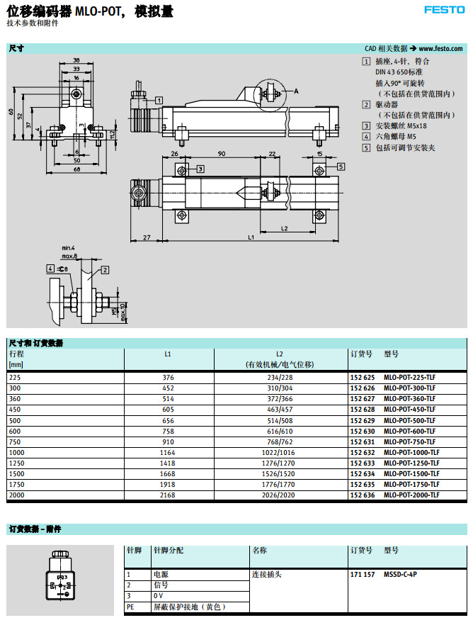 MLO-POT-225,MME-POT-225,MLO-MTS-225,MME-MTS-225,festo量位移編碼器