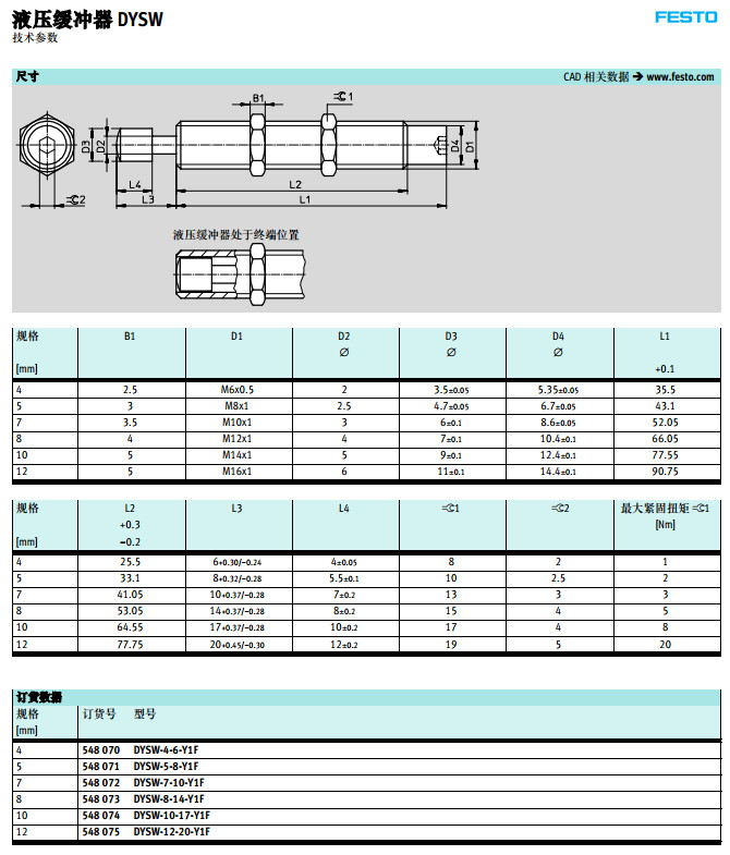 詳細信息 DYSW-4,DYSW-5,DYSW-7,DYSW-8,DYSW-10,DYSW-12,festo液壓緩沖器