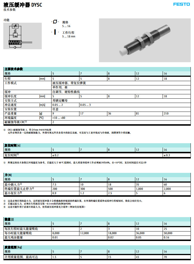 DYSC-5-5,DYSC-7-5,DYSC-8-8,DYSC-12-12,DYSC-16-18,festo液壓緩沖器