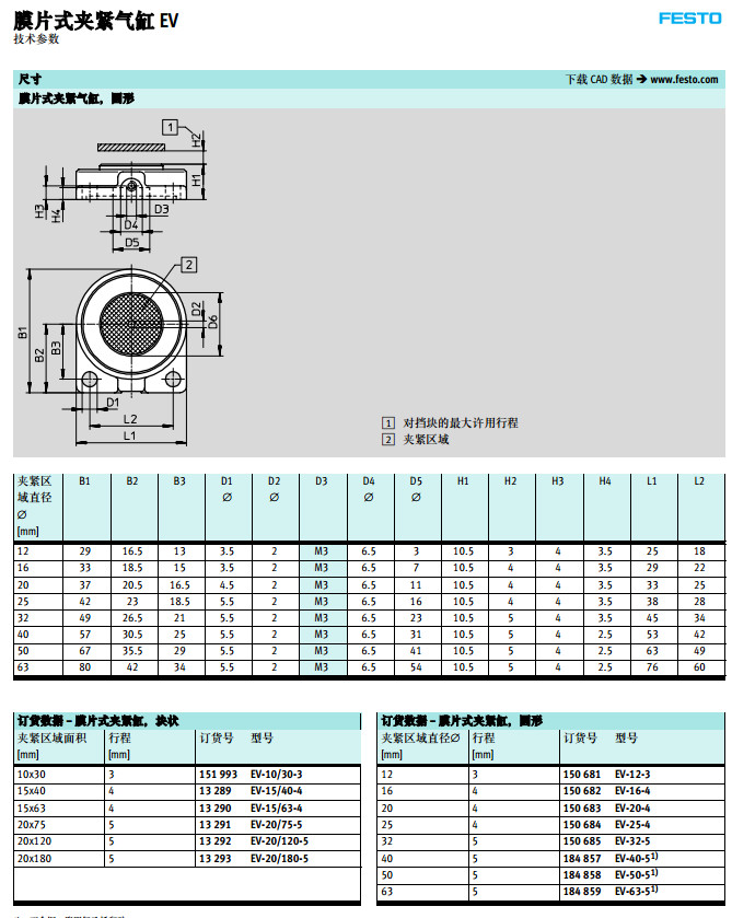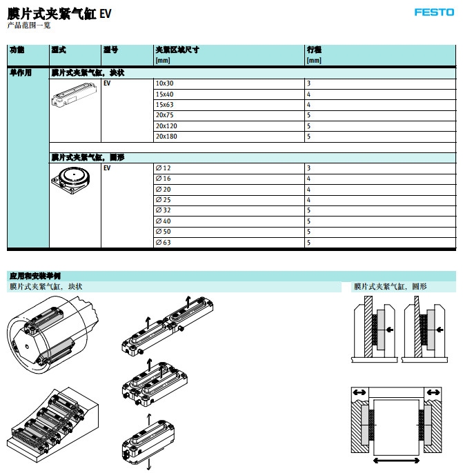 EV-10*30,EV-15*40,EV-15*63,EV-20*75,EV-12,EV-20,EV-32,EV-40,festo膜片式夾緊氣缸