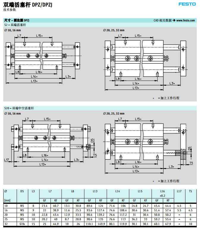DPZ-10,DPZ-25,DPZ-32,DPZJ-16,DPZJ-20,DPZJ-32,festo雙活塞桿氣缸