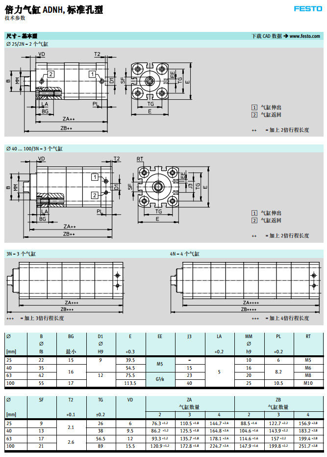ADNH-25,ADNH-40,ADNH-63,ADNH-100-80-A-P-A-2N,festo倍力氣缸