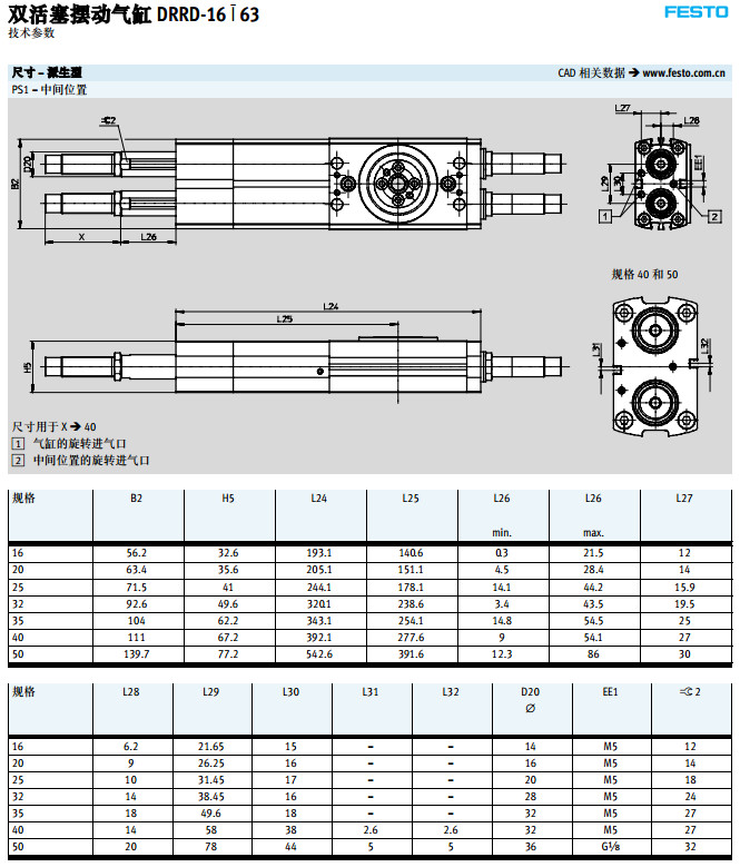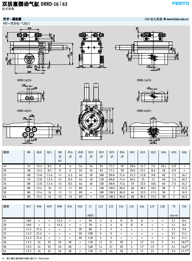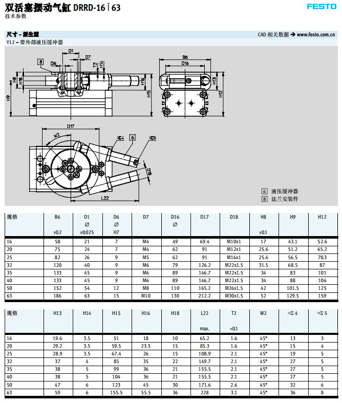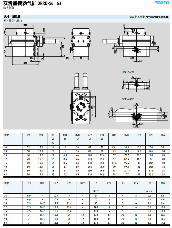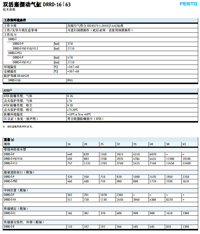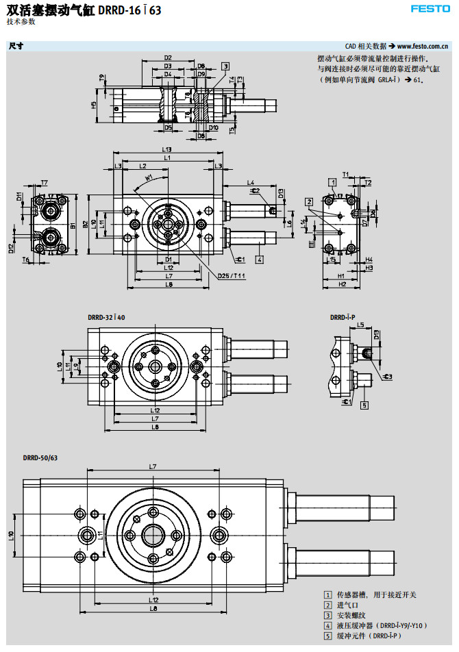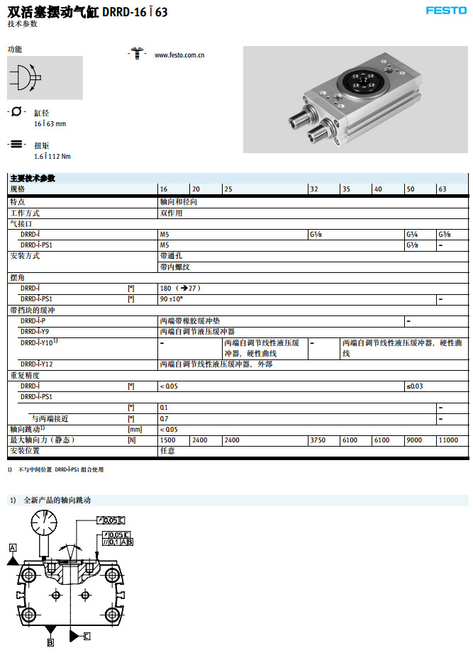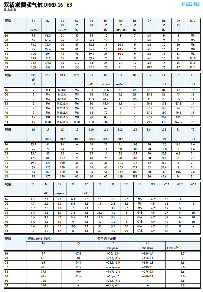 DRRD-16,DRRD-20,DRRD-25,DRRD-32,DRRD-40,DRRD-50,DRRD-63,festo擺動氣缸