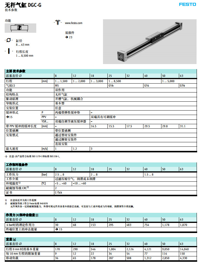 DGC-8-1000-G,DGC-12-1000-G,DGC-25-1000-G,DGC-32-1000-G,festo無桿氣缸 |