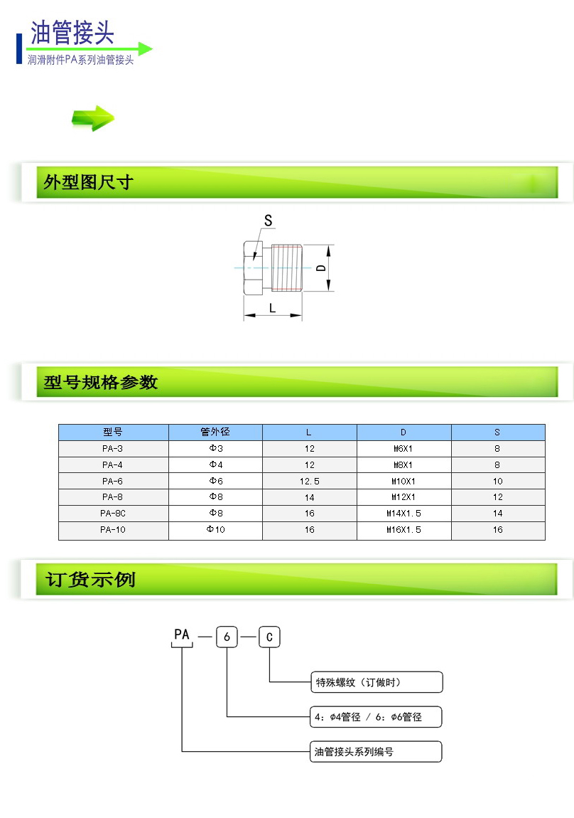 詳細(xì)信息 PA-3,PA-4,PA-6,PA-8,PA-8C,PA-10,油管接頭