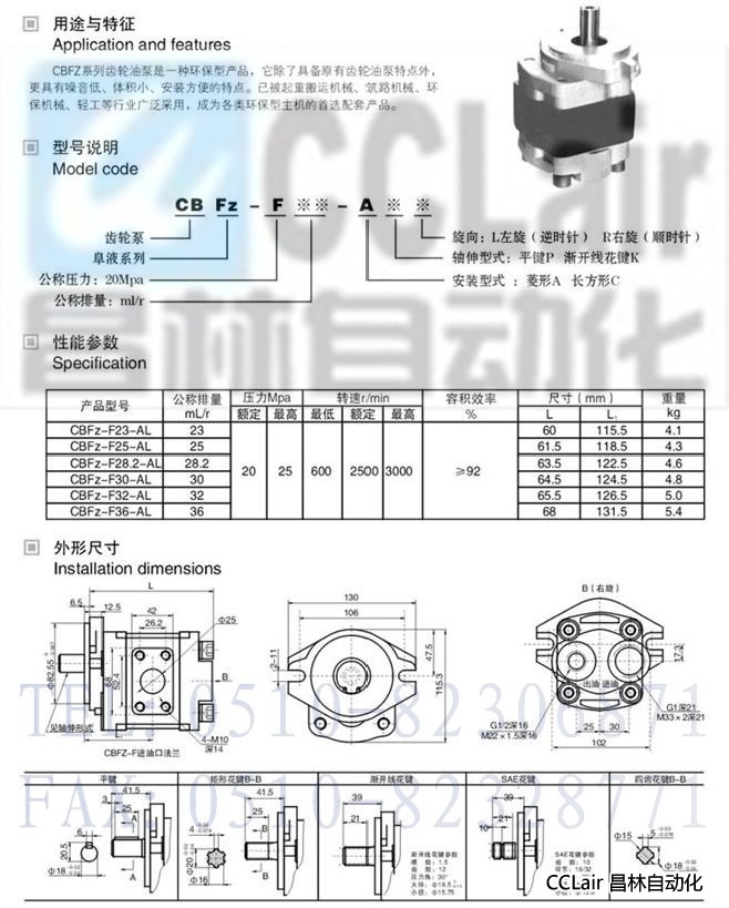 CBFz-F23-AL,CBFz-F25-AL,CBFz-F28.2-AL,齒輪泵