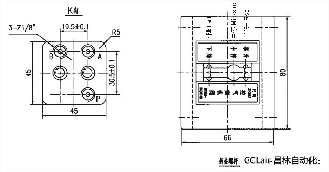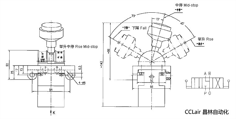 當(dāng)手柄在: “舉升”位置時,P腔與A腔通,B腔不工作;
