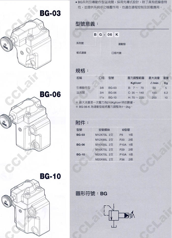 詳細(xì)信息 BG-03K,BG-06K,BG-10K,引導(dǎo)動(dòng)作型溢流閥