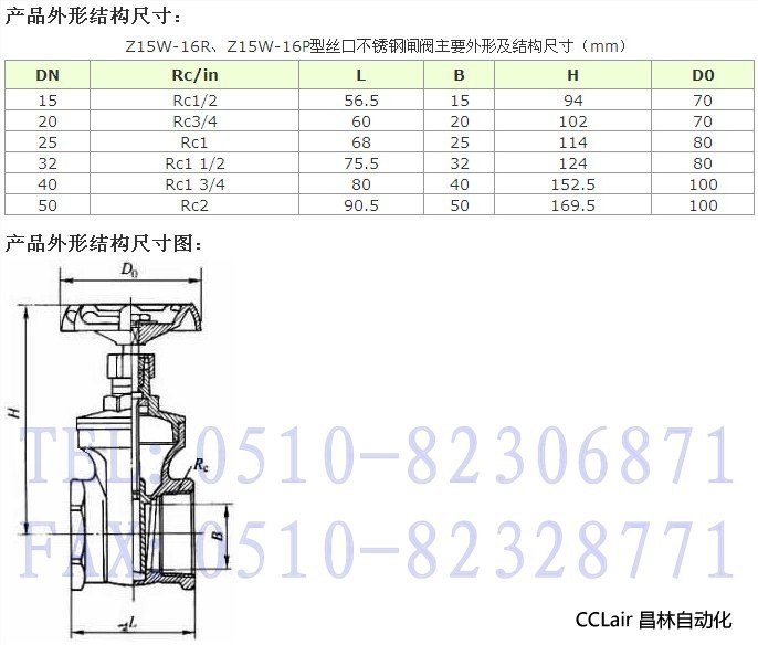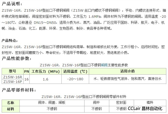 » Z15W-16P,Z15W-16R,絲口不銹鋼閘閥