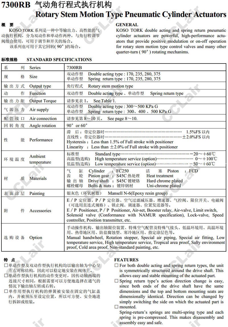 7317RB,7323RB,7328RB,7337RB,氣動角行程式執(zhí)行機構(gòu)