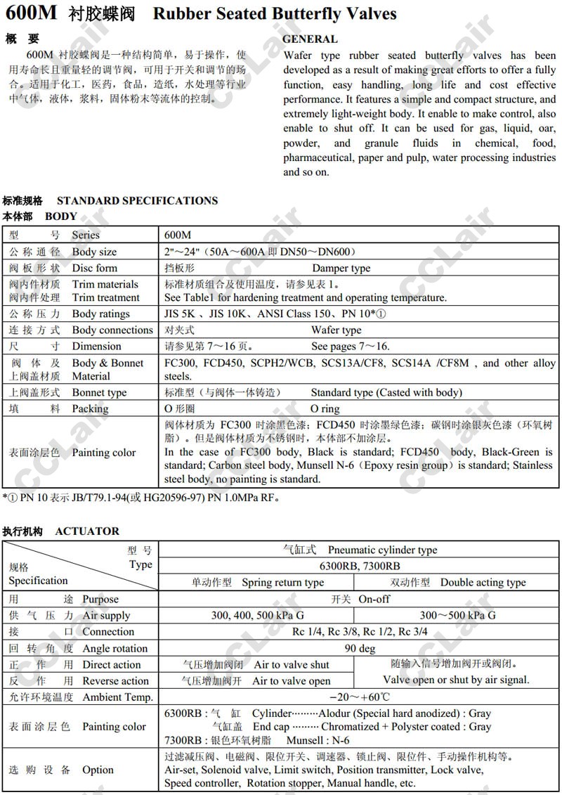 600M-6300RB,600M-7300RB,600M-3600RA,600M-3400RA,600M-802,襯膠蝶閥