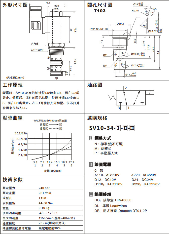 SV10-34-P-R110-DR,SV10-34-P-A220-DR,SV10-34-P-D24-DR,SV10-34-P-R220-DR,三通電磁換向閥