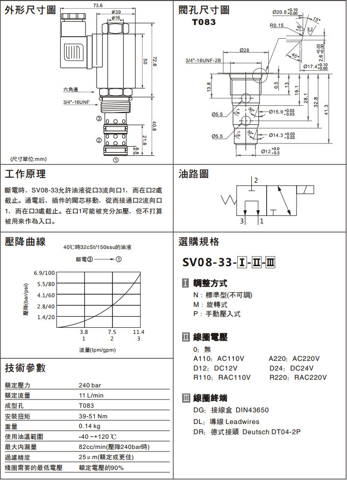 SV08-33-P-D12-DR,SV08-33-P-R110-DR,SV08-33-P-A220-DR,SV08-33-P-D24-DR,SV08-33-P-R220-DR,三通電磁換向閥