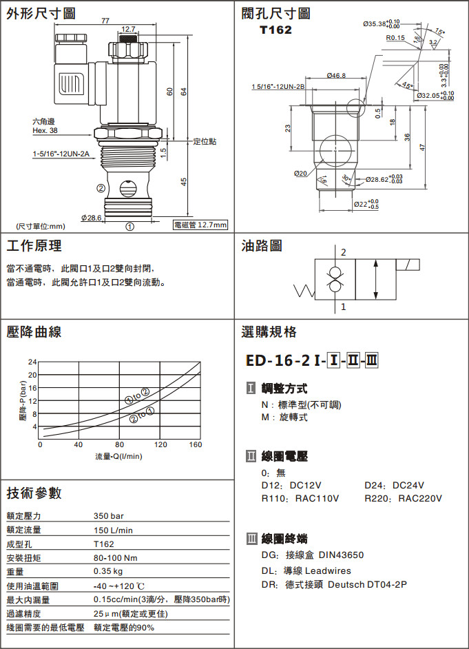 ED-16-2I-M-D12-DL,ED-16-2I-M-R110-DL,ED-16-2I-M-D24-DL,ED-16-2I-M-R220-DL,ED-16-2I-M-0-DR,ED-16-2I-M-D12-DR, ED-16-2I-M-R110-DR,ED-16-2I-M-D24-DR,ED-16-2I-M-R220-DR,兩通常閉型雙向截止電磁換向閥