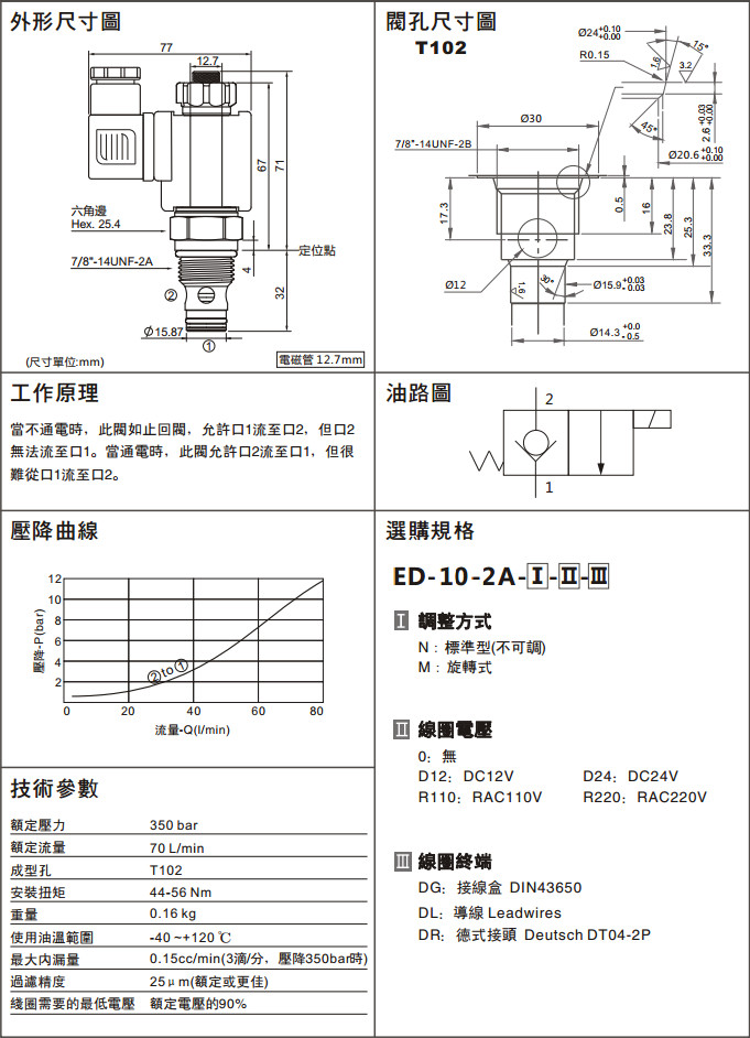 ED-10-2A-M-R110-DR,ED-10-2A-M-D24-DR,ED-10-2A-M-R220-DR,兩通常閉型電磁換向閥
