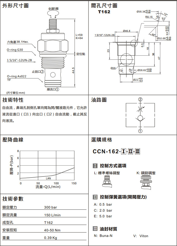 CCN-162-LAN,CCN-162-LCN,CCN-162-LEV,CCN-162-KAN,CCN-162-KEV,CCN-162-LEN,CCN-162-LAV,CCN-162-LCV,CCN-162-KCN, CCN-162-KEN,CCN-162-KAV,CCN-162-KCV,單向閥(口1通口2自由流,附調(diào)整桿)