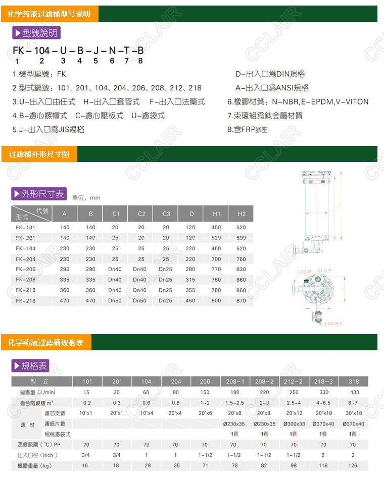 FK-101,FK-201,FK-104,FK-204,FK-206,FK-208,FK-212,FK-104-U-B-J-N-T-B,化學(xué)藥液過(guò)濾桶