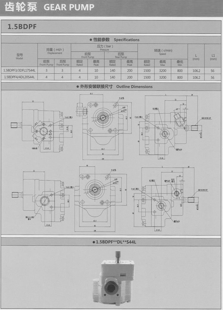 1.5BDPF3/3DFL17S44L,1.5BDPF4/4DFL20S44L,齒輪泵