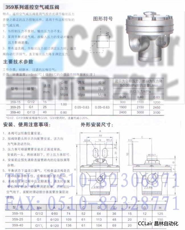 359-15,359-20,359-40,遙控減壓閥
