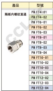 PMFT4,PMFT6,PMFT10,PMFT12,PMFT8-04,PMFT4-01,PMFT10-01,PMFT6-03,PMFT12-04,國(guó)鷹KUOIN隔板內(nèi)螺紋直通接頭