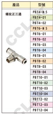PBT4,PBT6,PBT8,PBT10,PBT12,PBT12-03,PBT10-04,PBT4-M5,PBT6-01,國鷹KUOIN螺紋正三通接頭