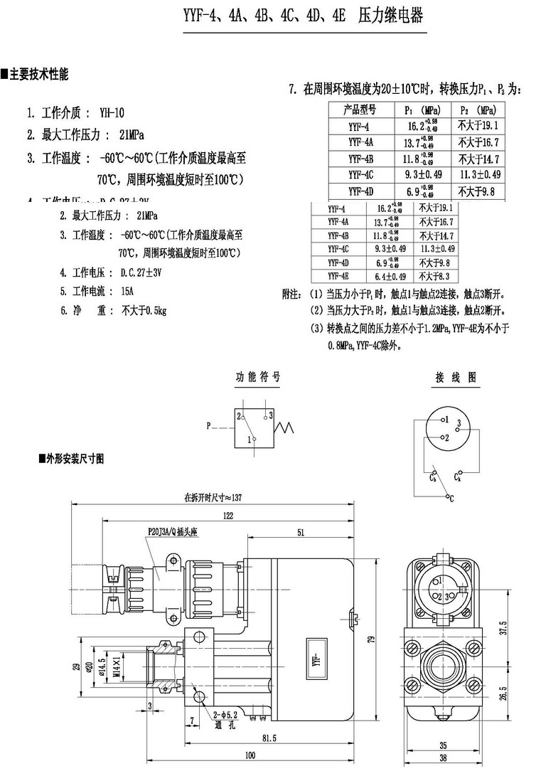 詳細信息 YYF-4,YYF-4A,YYF-4B,YYF-4C,YYF-4D,YYF-4E,壓力繼電器